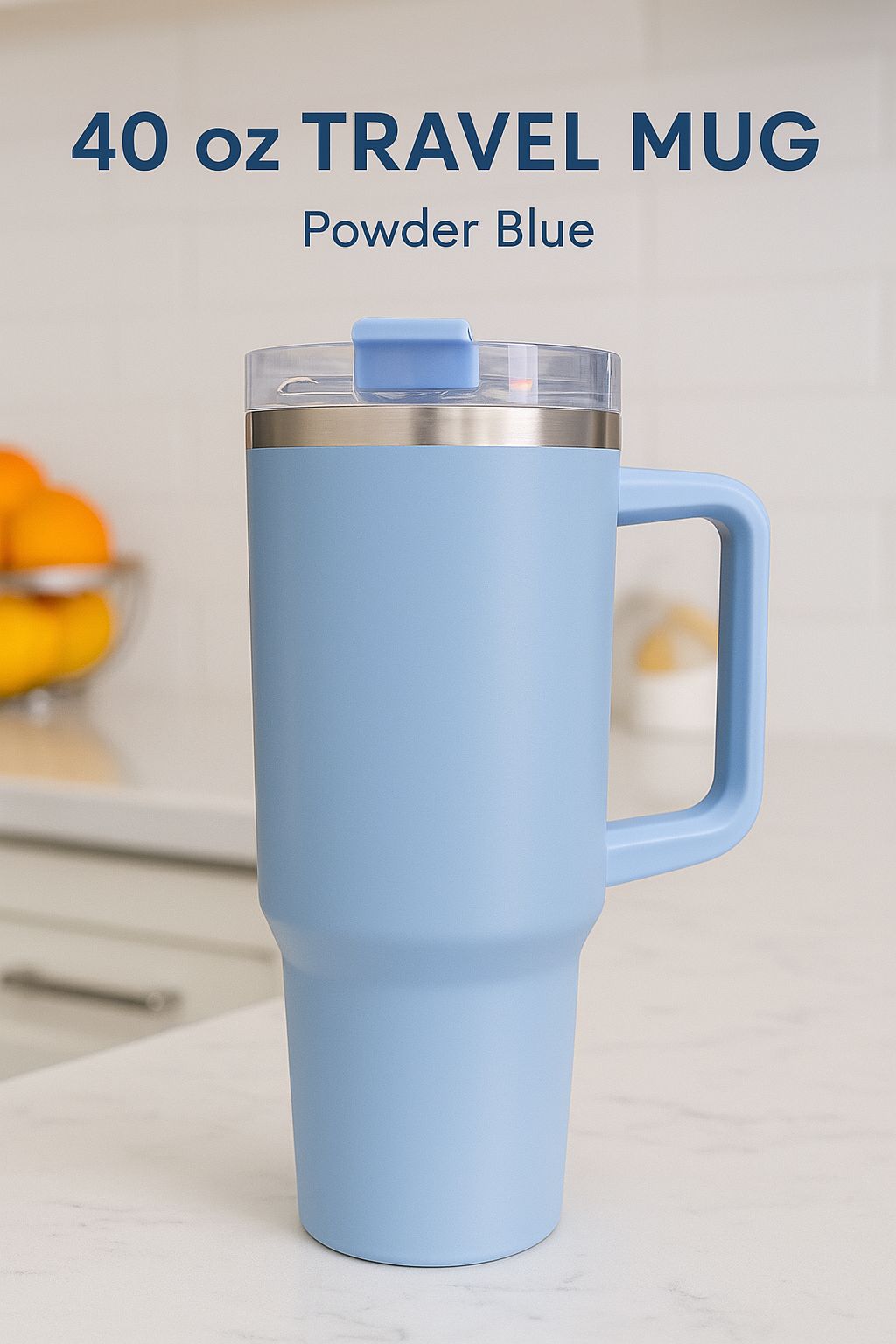 Stay hydrated in style with the Modo Homes 40 oz Travel Mug in a calming Powder Blue finish. Crafted for the on-the-go lifestyle, this sleek and durable mug features double-wall insulation to keep your drinks cold for up to 24 hours or hot for up to 12 hours. The ergonomic handle ensures a comfortable grip, while the secure, spill-resistant lid lets you sip confidently wherever the day takes you. Whether it’s your morning coffee or a refreshing smoothie, the ChillSipâ„¢ is your perfect travel companion.